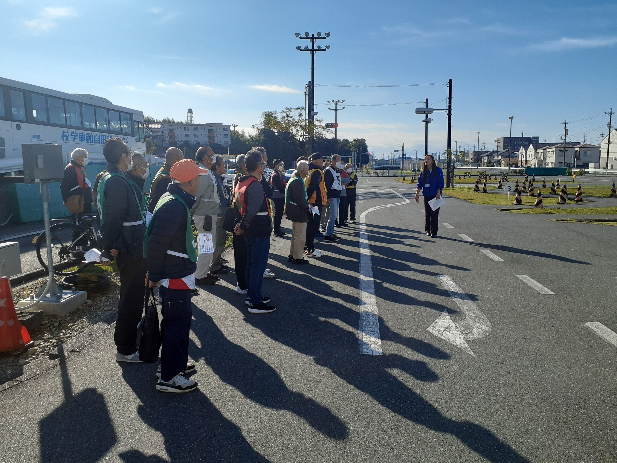 高齢者への交通安全啓発を目的として、「遠鉄磐田自動車学校」にて、運転体験を通して危険予測能力を高める研修会を開催しました。